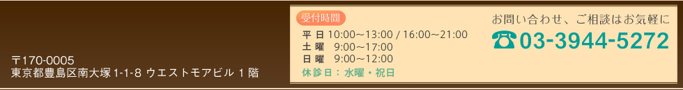 多くの患者様にご利用頂けるよう平日は夜21時まで営業しておりますのでお気軽にお問合せ下さい。